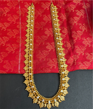 The Pratha Antique Silver Lakshmi Kasumala Coin Necklace/Waistbelt (Pearl)
