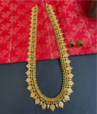 The Pratha Antique Silver Lakshmi Kasumala Coin Necklace/Waistbelt (Green)