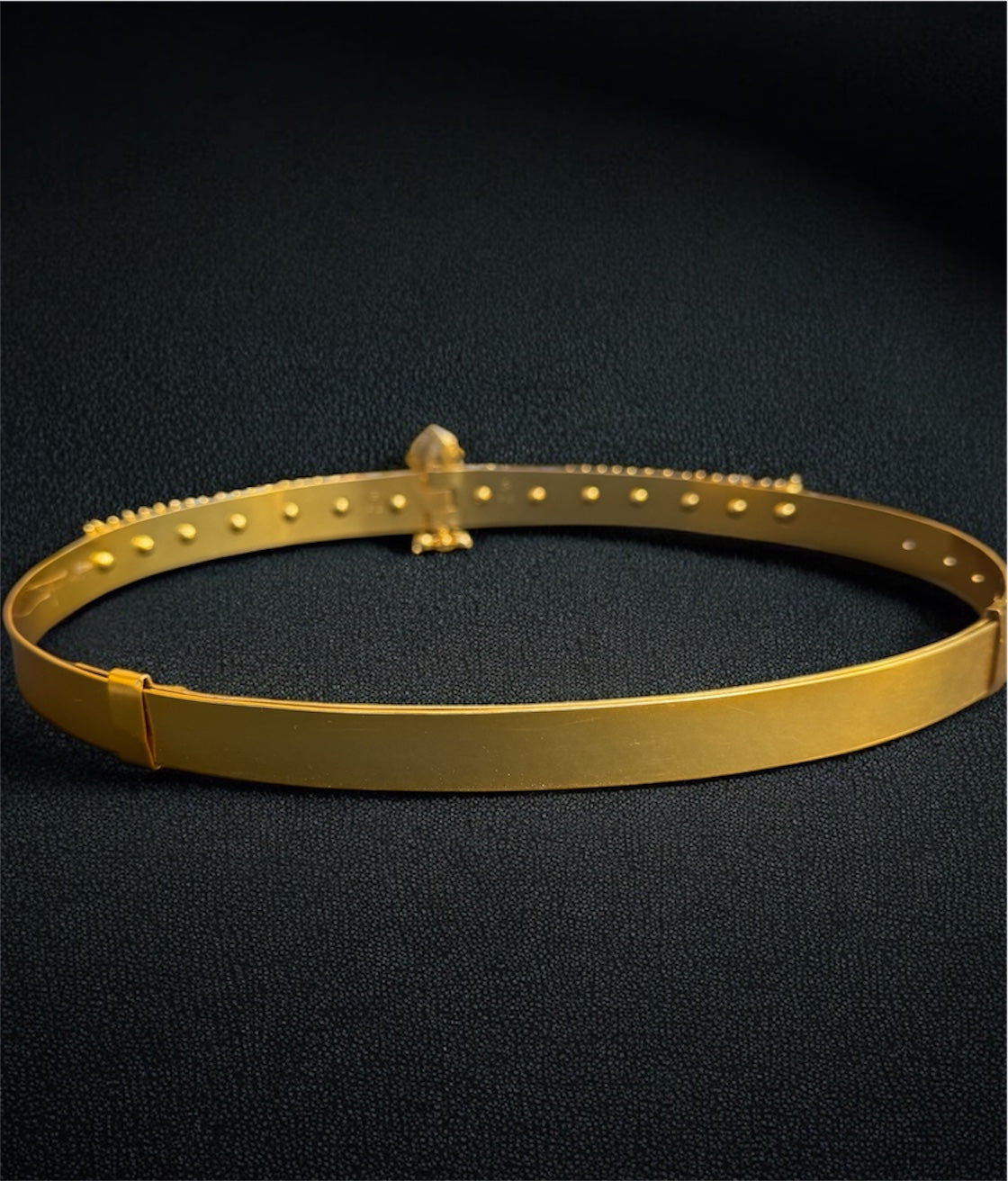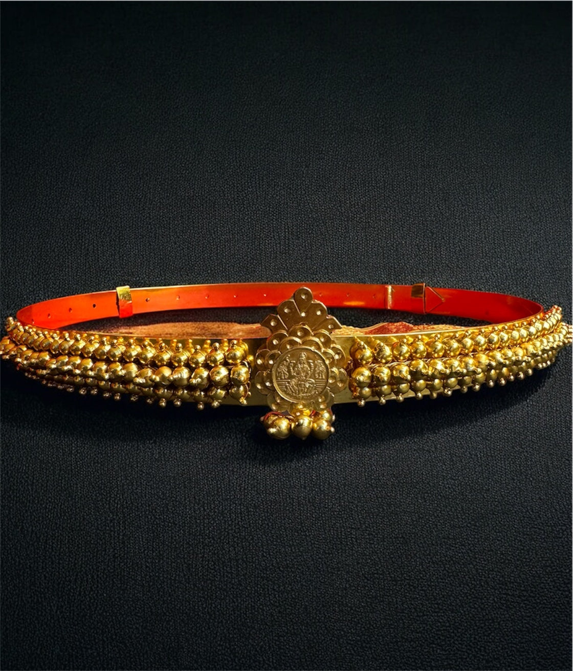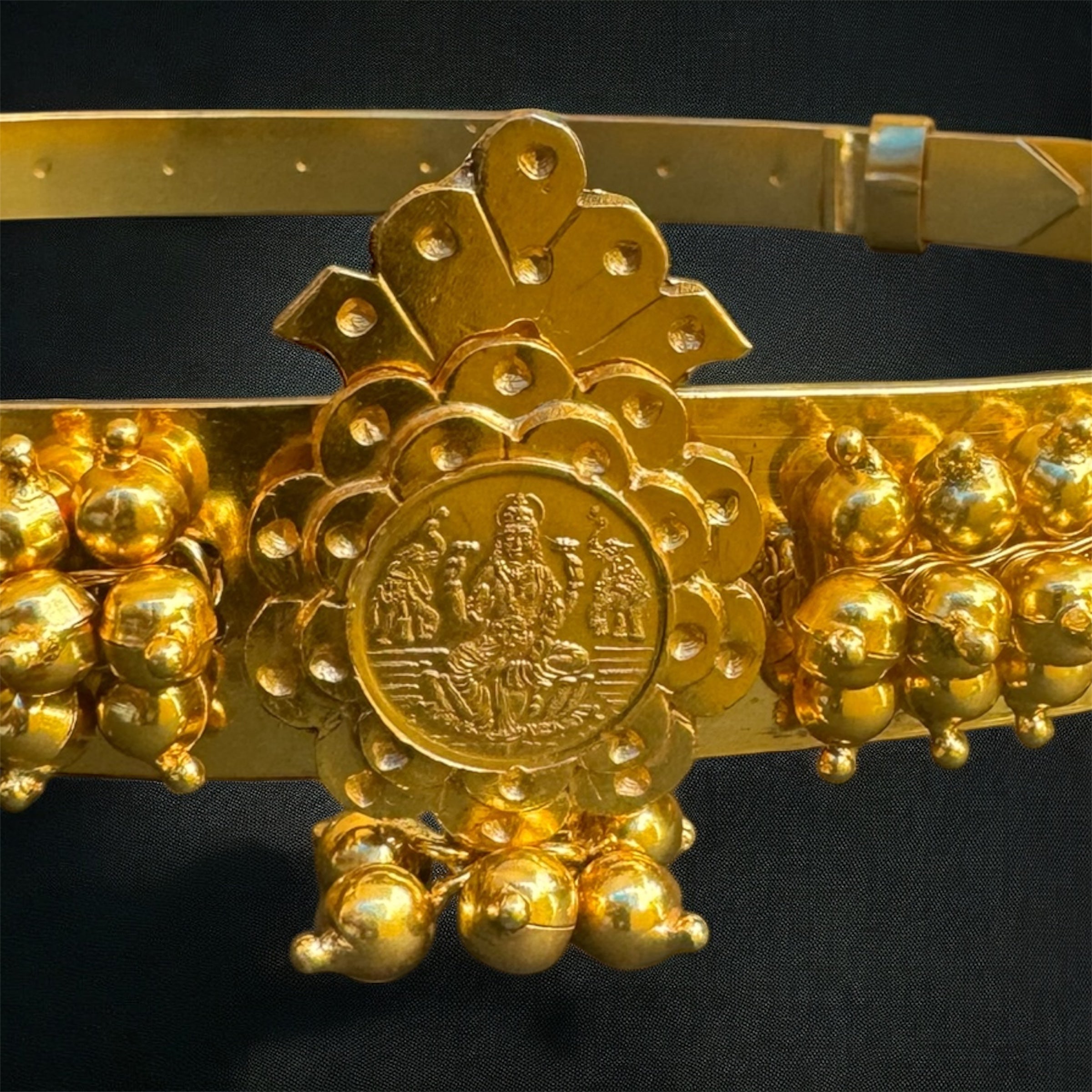 Variously known as Daabu, Vaddanam, Oddiyanam, or Sonta Patti, this waist belt is an essential ornament in a South Indian bride’s ensemble, especially auspicious with the presence of Goddess Lakshmi.