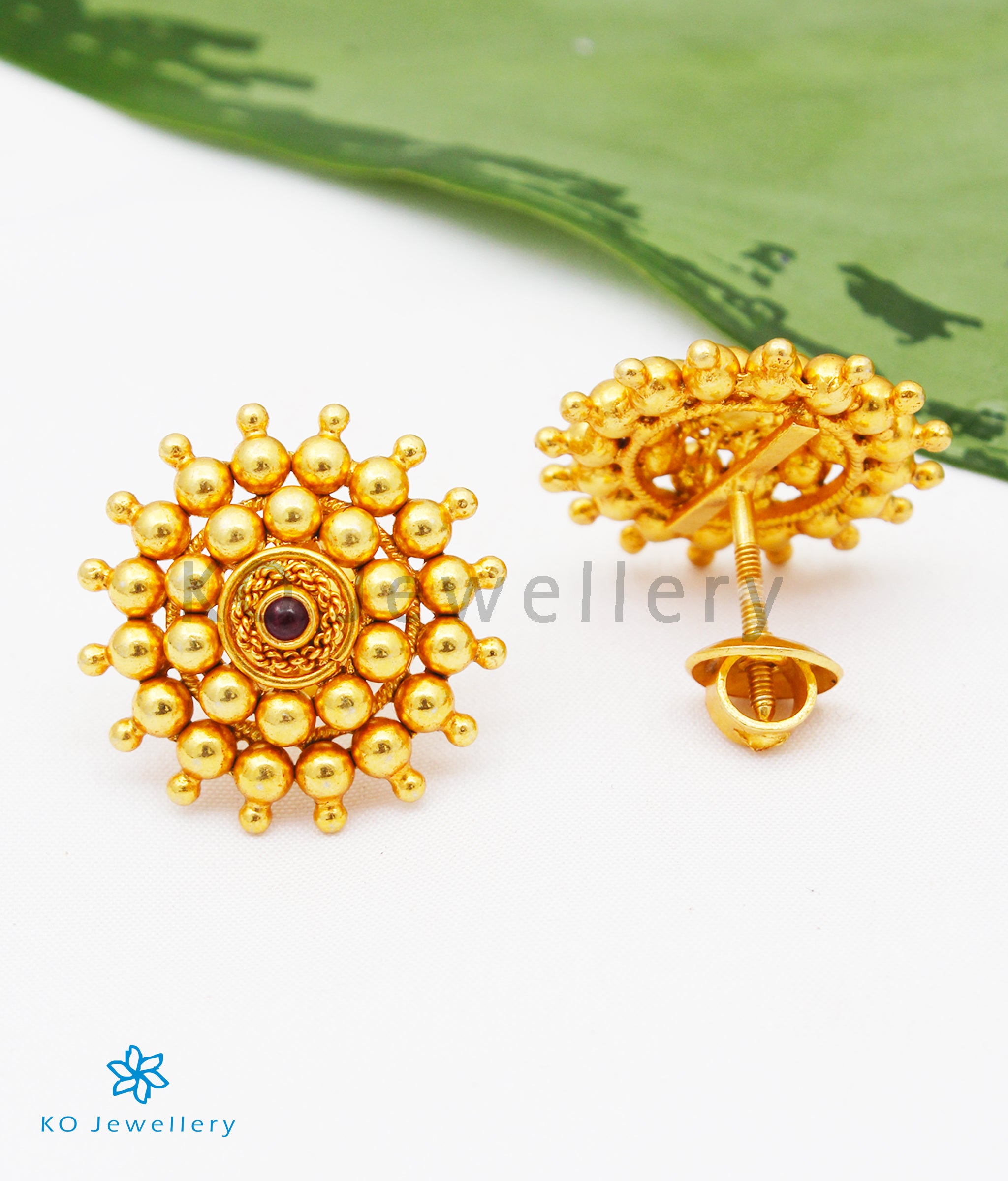 Stunning and gorgeous in design, this is an impeccably handcrafted pair of kempu earstuds in Sterling Silver (92.5%) which has been gold-dipped.