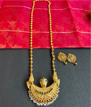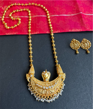 The Vajra Shankhu, Chakra Nama Silver Pearl Necklace & Earrings (Oxidised)