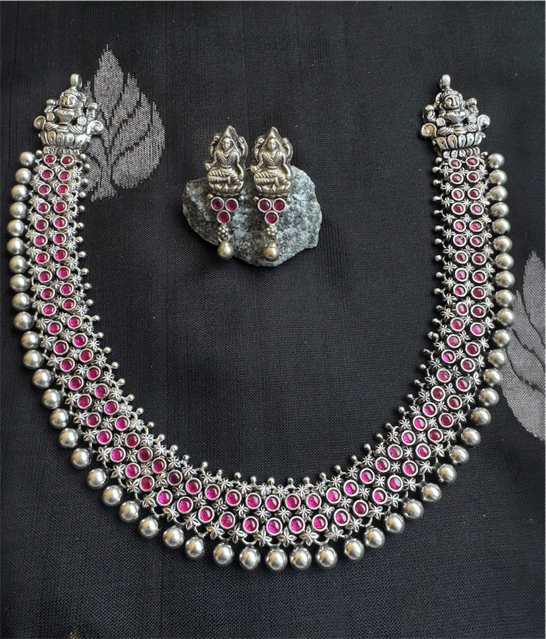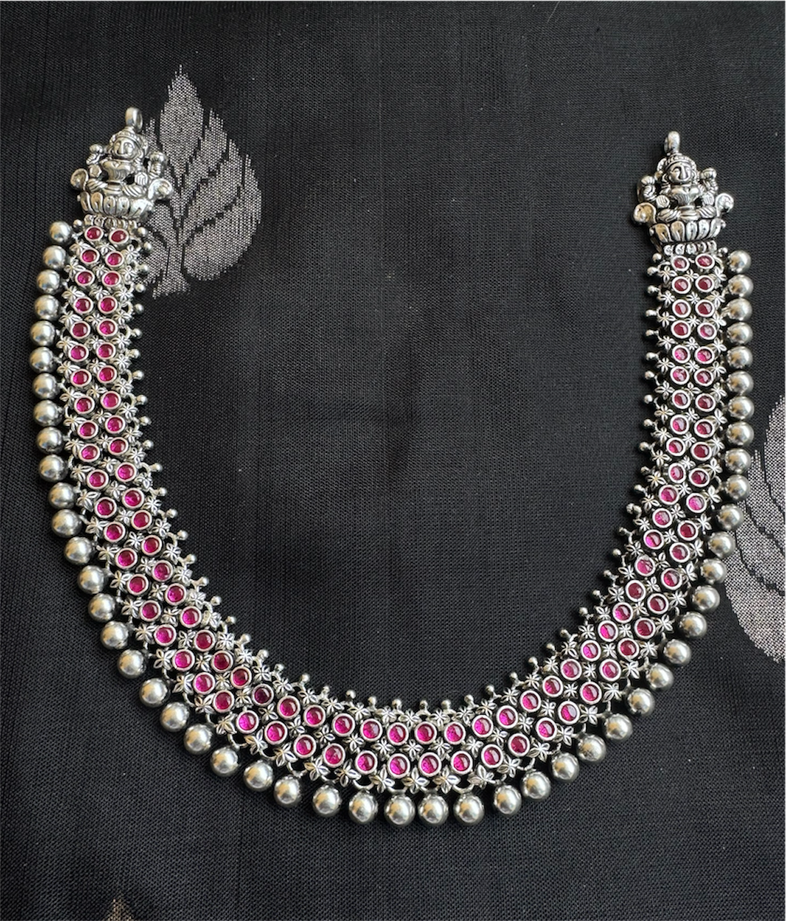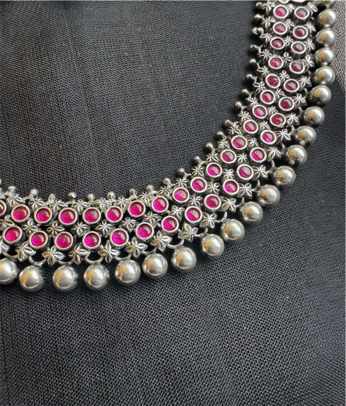 The Jeshika Silver Kempu Necklace (Oxidised)