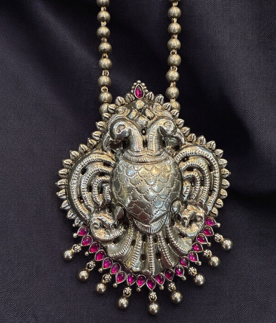 The Vihaga Silver Gandaberunda Necklace (Oxidised)