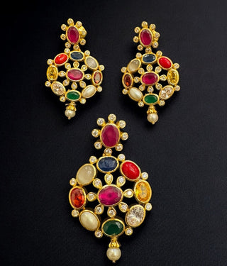 In Indian society, jewellery is not meant for adornment alone, imparting protection to the wearer has been and still is an important function. According to Hindu astrology, life on earth is influenced by the `navagrahas', or nine influencers. Navratna jewellery brings harmony between man and the planets that are believed to control his destiny.Crafted using Sterling Silver 92.5% and a combination of "nine gems" recognised as sacred and said to provide an astrological balance/benefit to the wearer this collection includes a range of handcrafted Navratna Temple Jewellery in unique designs. Crafted using Natural Pearl, Cat's Eye, Garnet, Recreated Coral and Zircon, the pieces in this collection are a feast for the eyes.Read more in our blog..Â