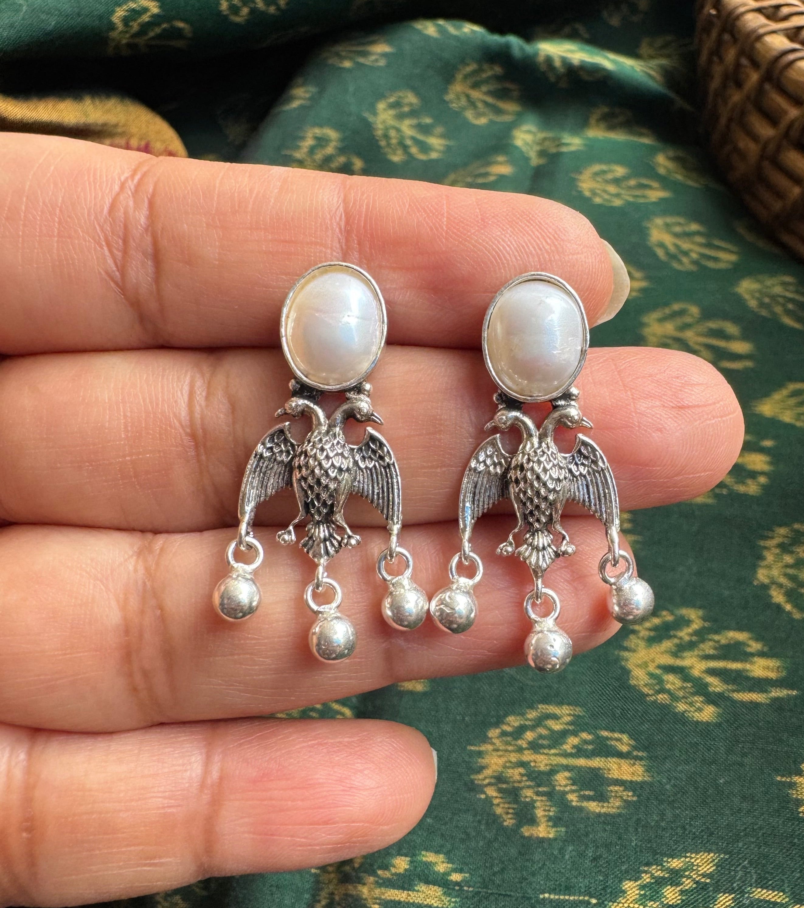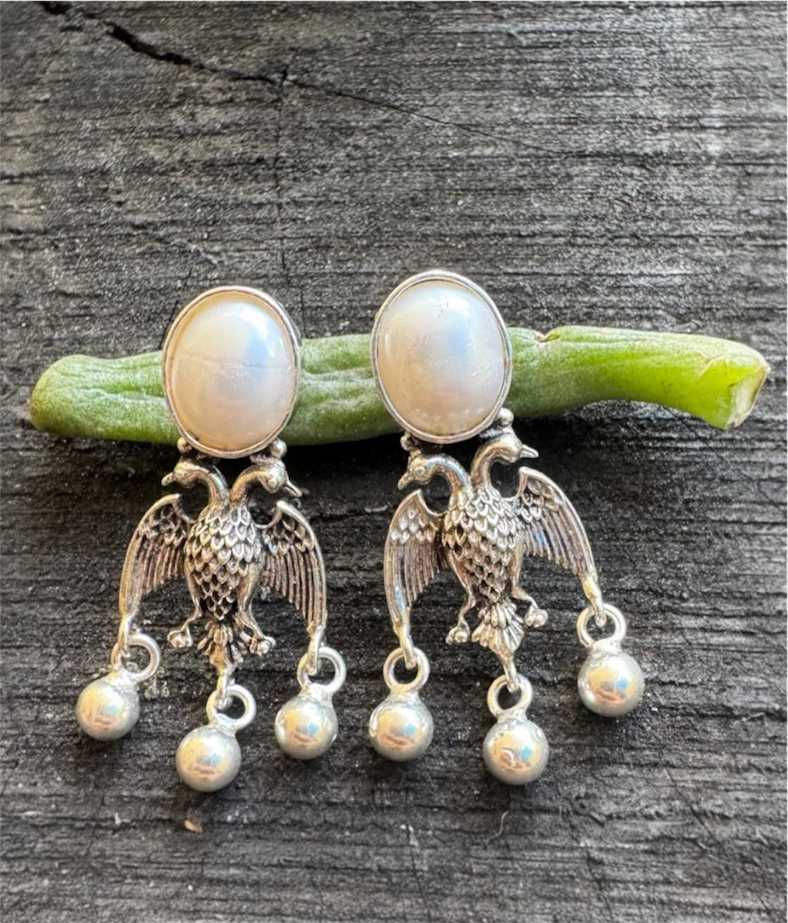 The Dvi-Paksha Silver Gandaberunda Pearl Earrings