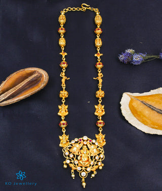 The Marala Silver Guttapusalu Necklace (Oxidised/Blue/Rice Pearl)