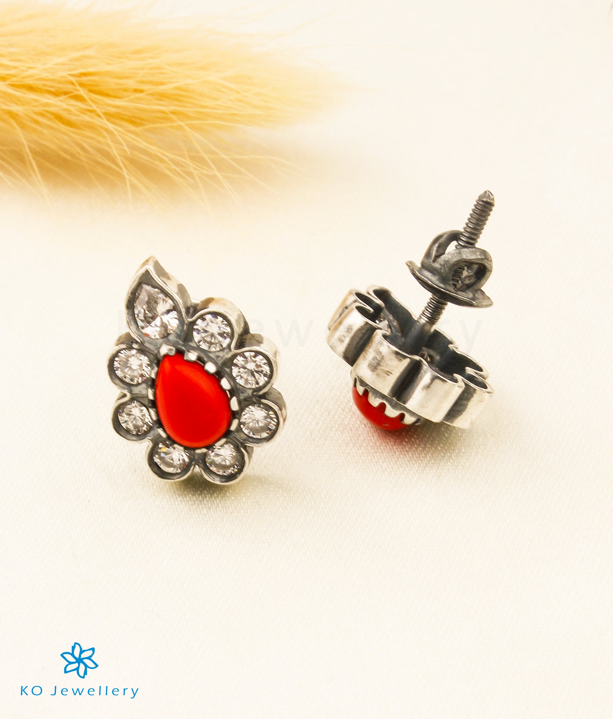 The Bhavika Silver Kemp Pendant Set (Oxidised/Coral)