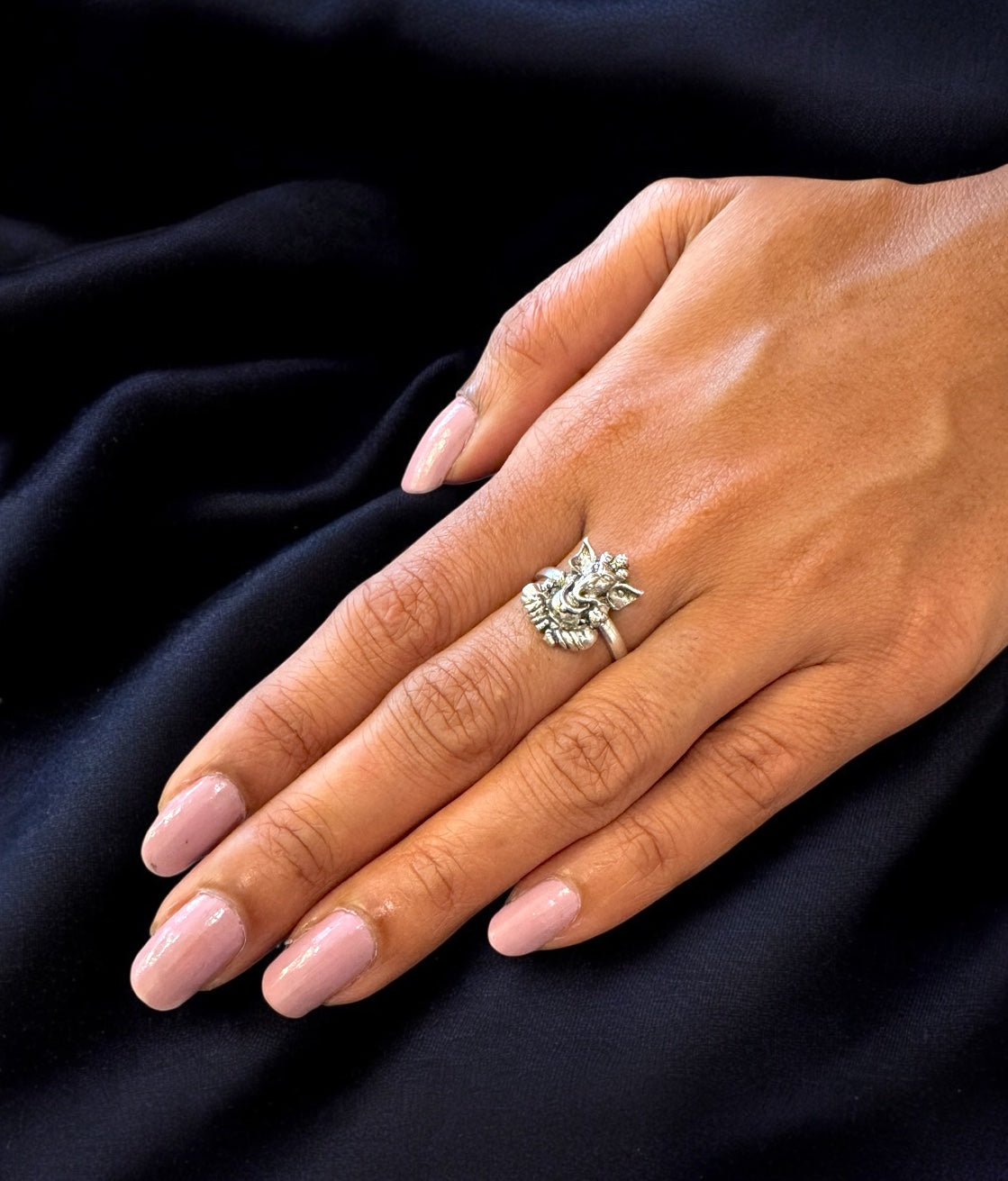 The Mandaka Silver Ganesha Adjustable Finger Ring