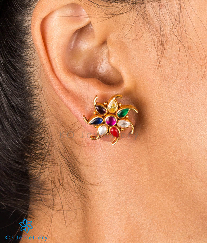 The Pauspa Silver Navratna Ear-Studs