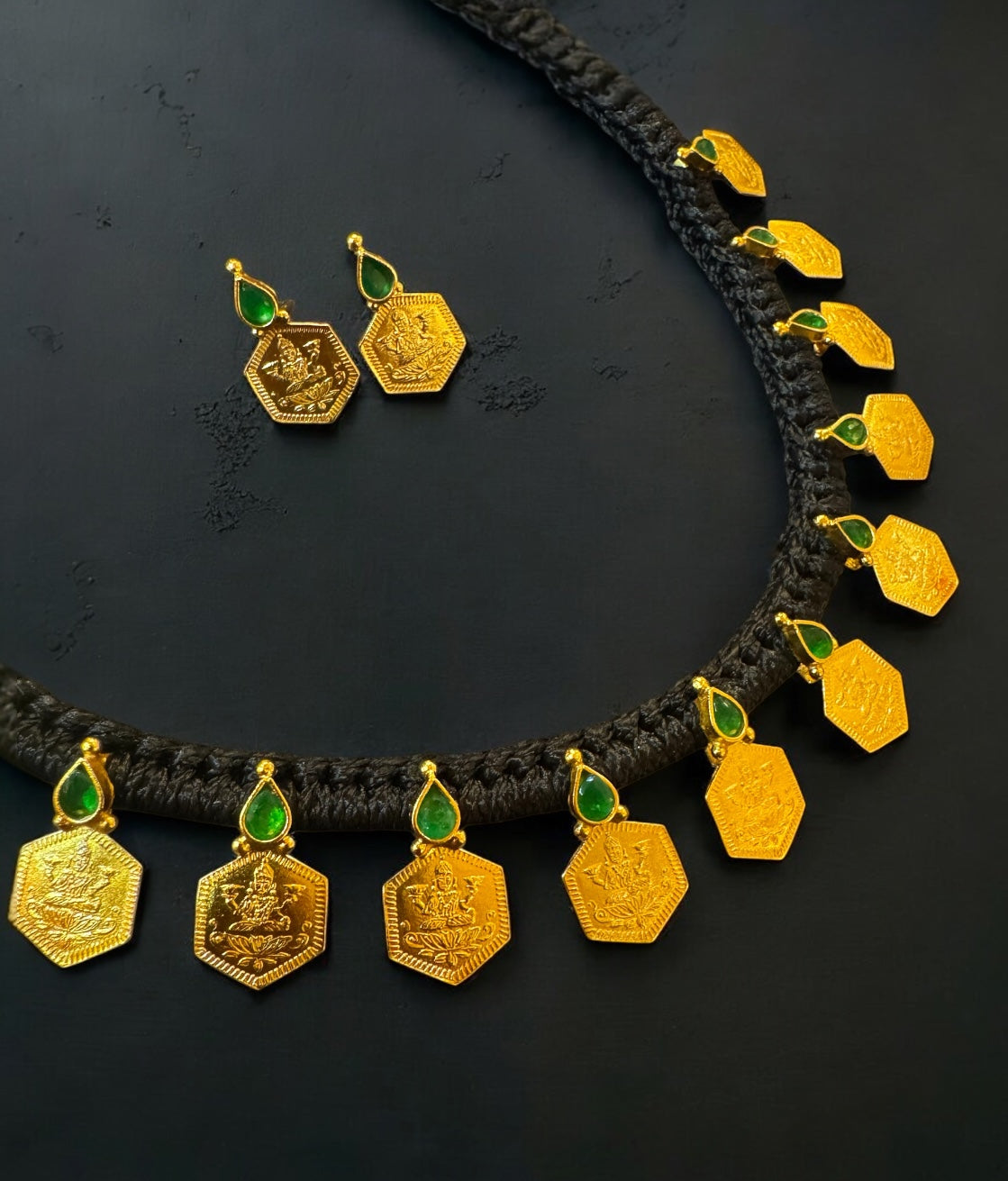 The Deeksha Lakshmi Coin Silver Thread Necklace & Earrings