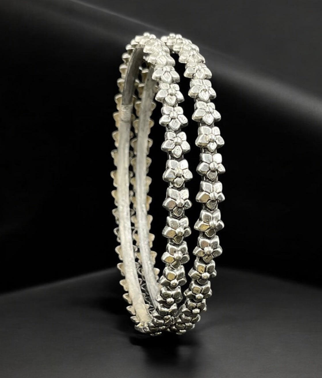The Anvaya Silver Floral Bangle- Single (Oxidised/Size /2.2/2.4/2.6/2.8)