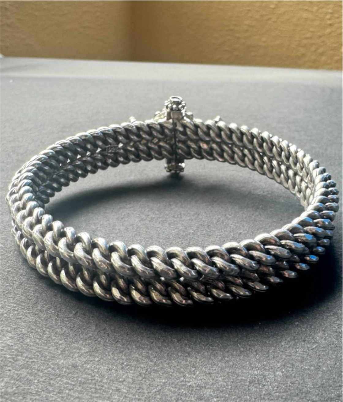 This unique construction gives the bracelet a solid, bold, and truly mesmerising look, making it a striking statement piece.