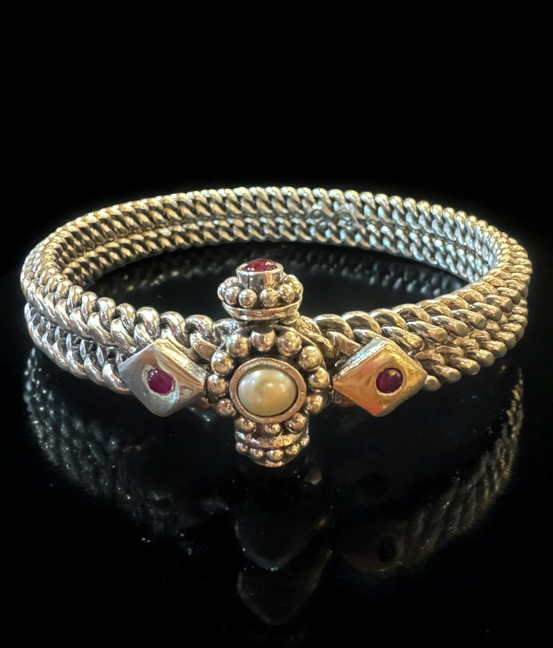 This unique construction gives the bracelet a solid, bold, and truly mesmerising look, making it a striking statement piece.