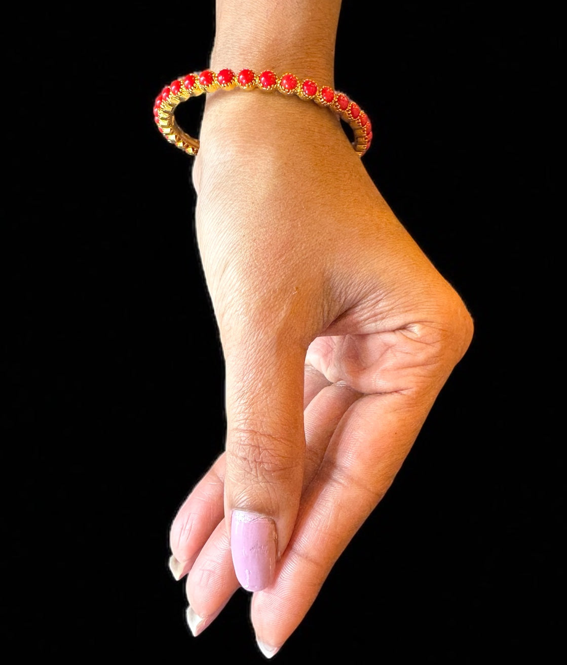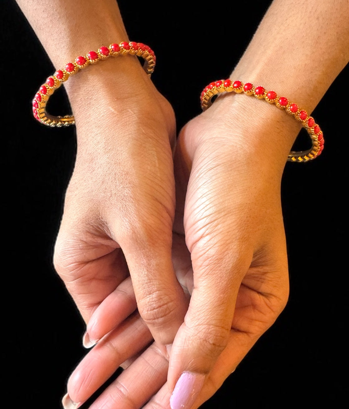 Coral kadas or bracelets have been an important part of Indian heritage jewelry, symbolizing elegance and tradition. Adding a regal charm this Coral bangle is sure to become piece in every jewelry collection.