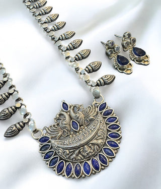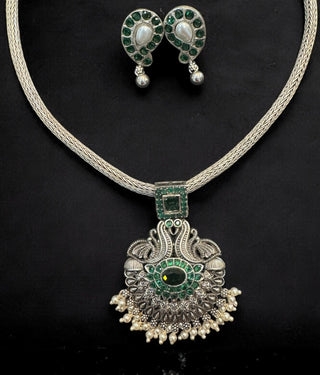 The Vajra Shankhu, Chakra Nama Silver Necklace & Earrings (Oxidised)