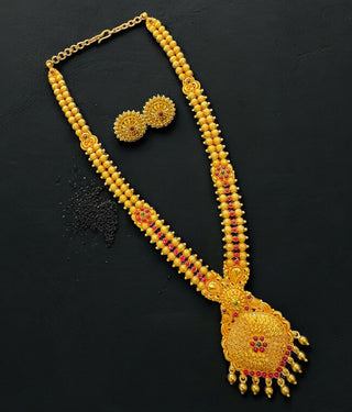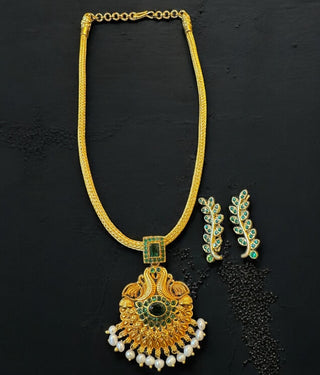 Silver and gold plated necklace sets with paired ear rings, haaras, kasu malas, dolki bead necklaces, manga-malai. Explore many more beautiful jewellery options.
