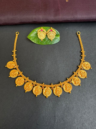 The Saumika Antique Silver Kemp Lakshmi Kasumala Coin Necklace & Earrings
