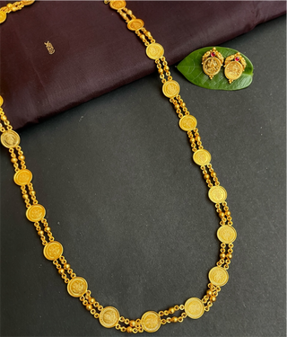 The Saumika Silver Lakshmi Kasumala Coin Necklace & Earrings (Pearl)