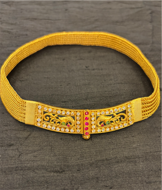 The Pratha Antique Silver Lakshmi Kasumala Coin Necklace/Waistbelt (Green)
