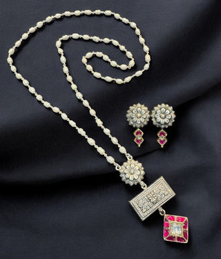 The Vajra Shankhu, Chakra Nama Silver Pearl Necklace & Earrings (Oxidised)