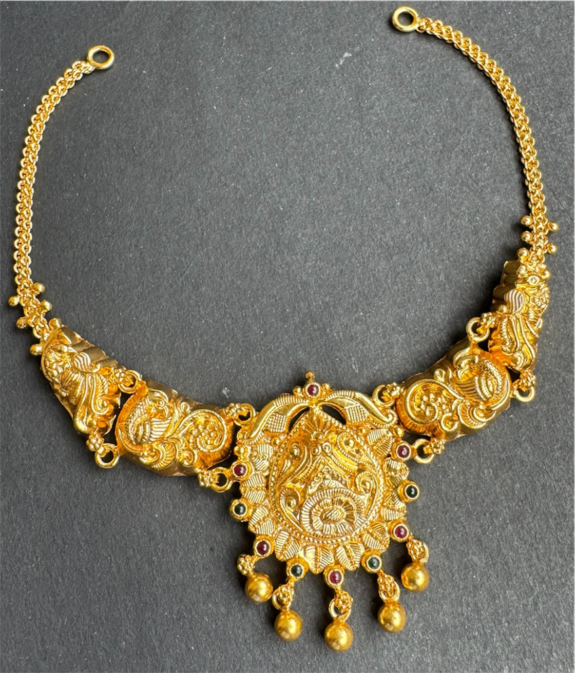 Handmade Nakshi Lightweight Haaram | 92.5 Silver | 24K Gold Plated | Peacock Motif | Kemp Detailing
