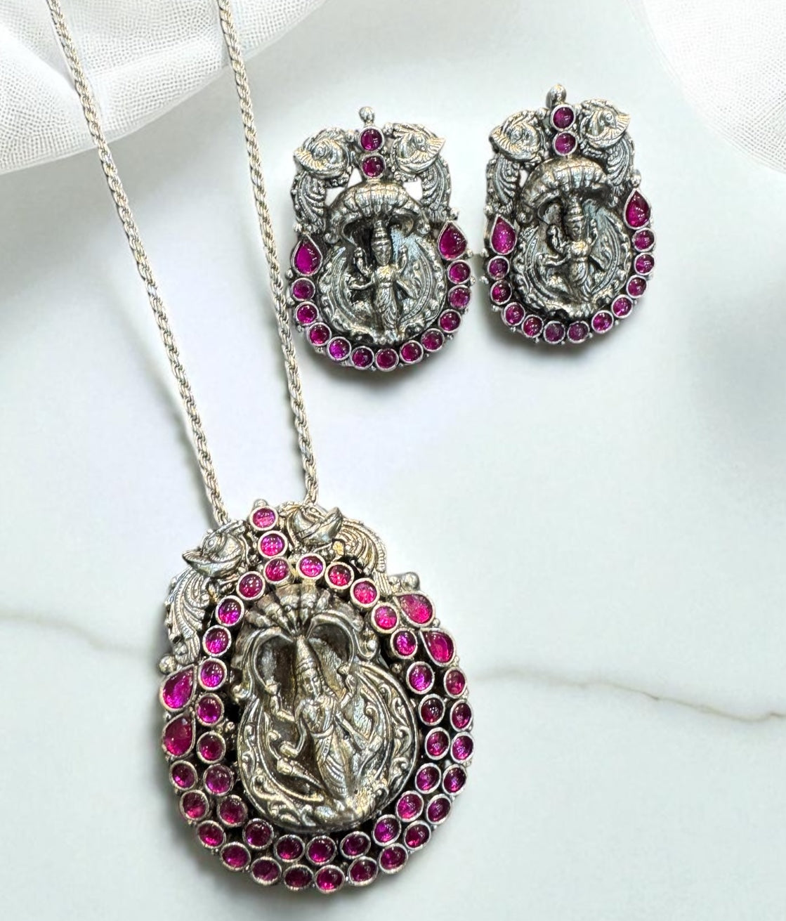 The Adishesha Lakshmi Silver Pendant & Earrings