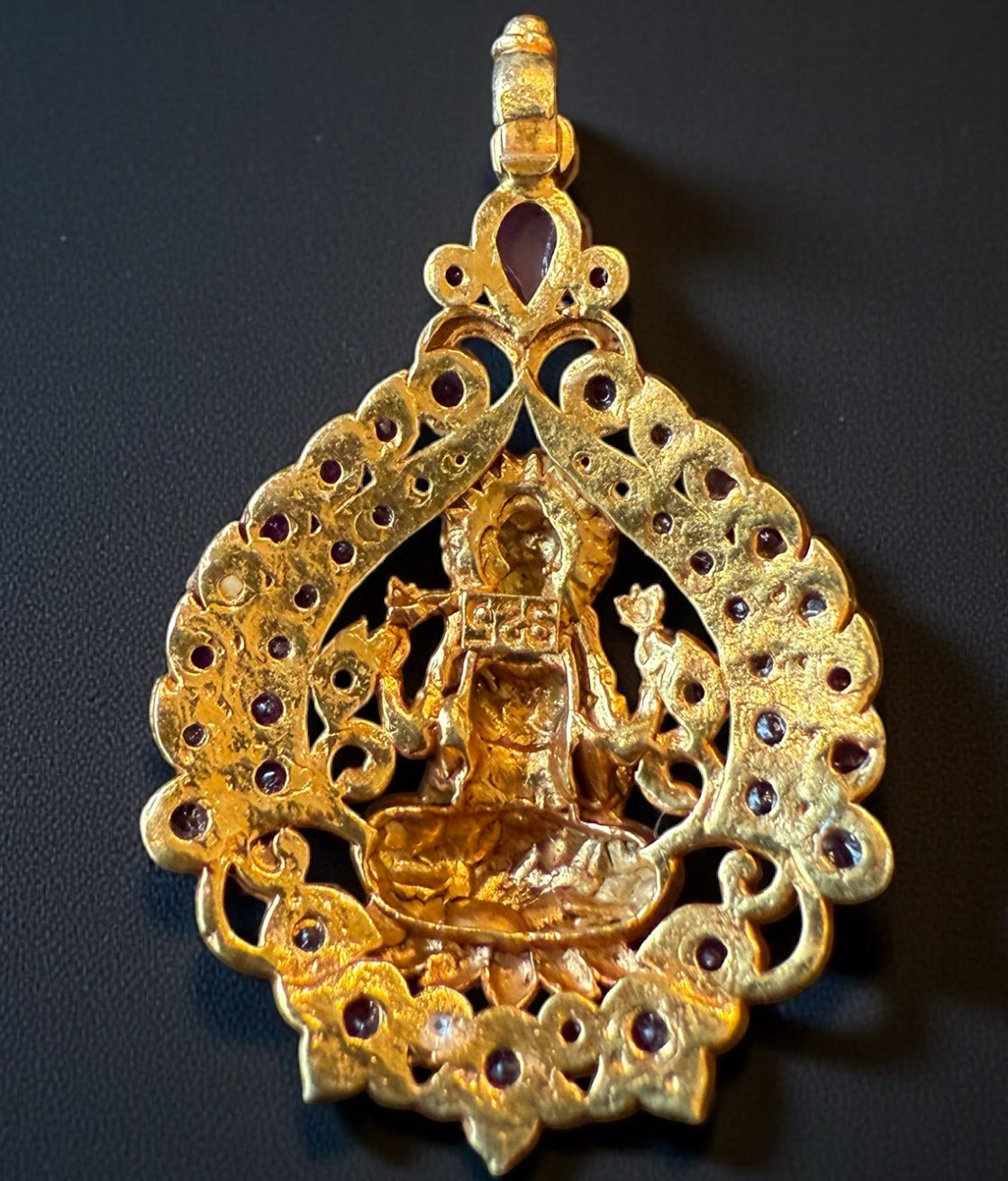 Step into the world of authentic temple jewellery with our handcrafted Lakshmi Motif Kemp Stone Pendant and Earrings Set, created using time-honoured techniques passed down through generations. Made entirely in pure 92.5 sterling silver and finished with rich 24K gold plating, this set carries the unmistakable brilliance, depth, and warmth of real gold.