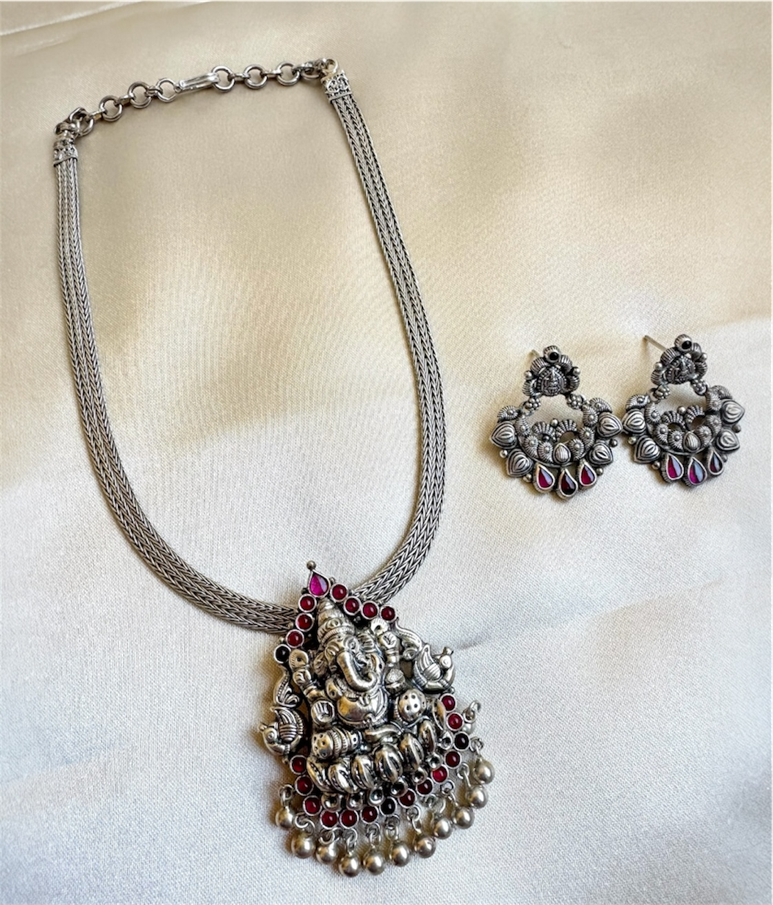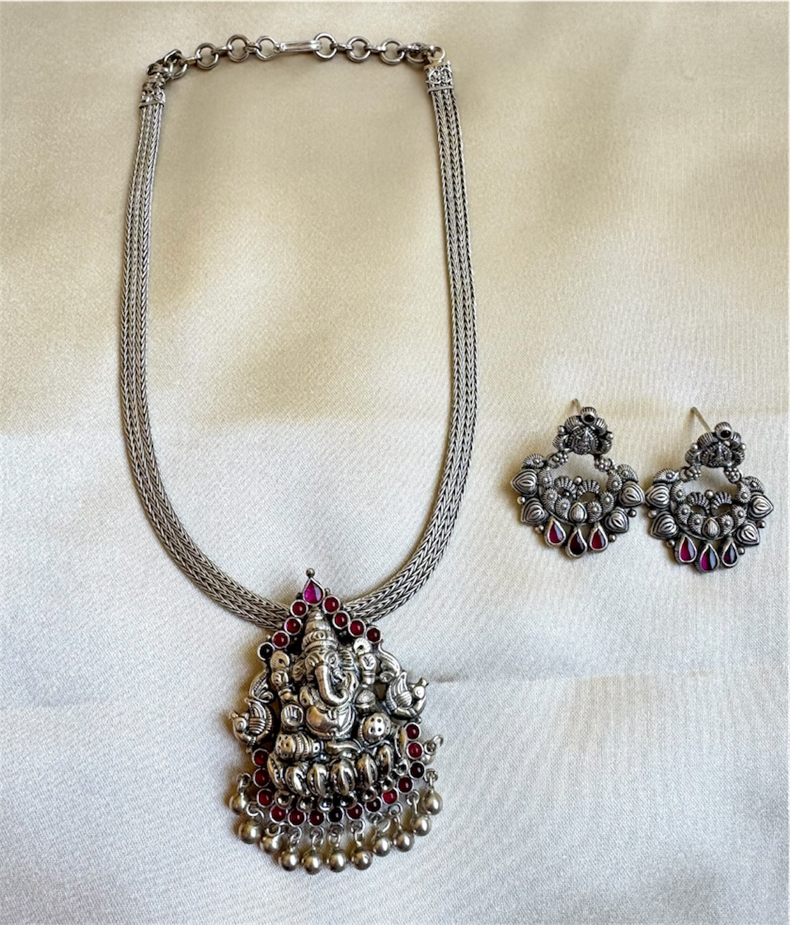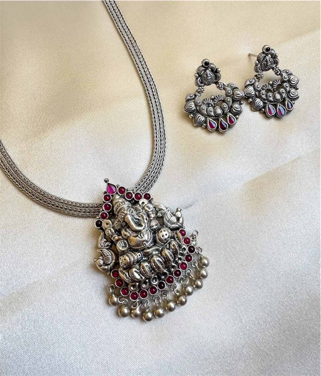 The Riddhesh Silver Ganesha Pendant & Earrings