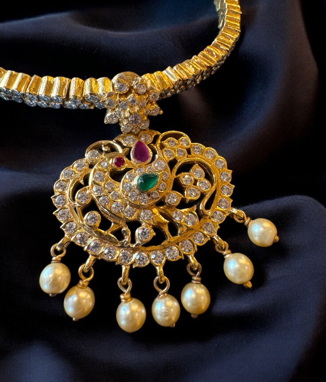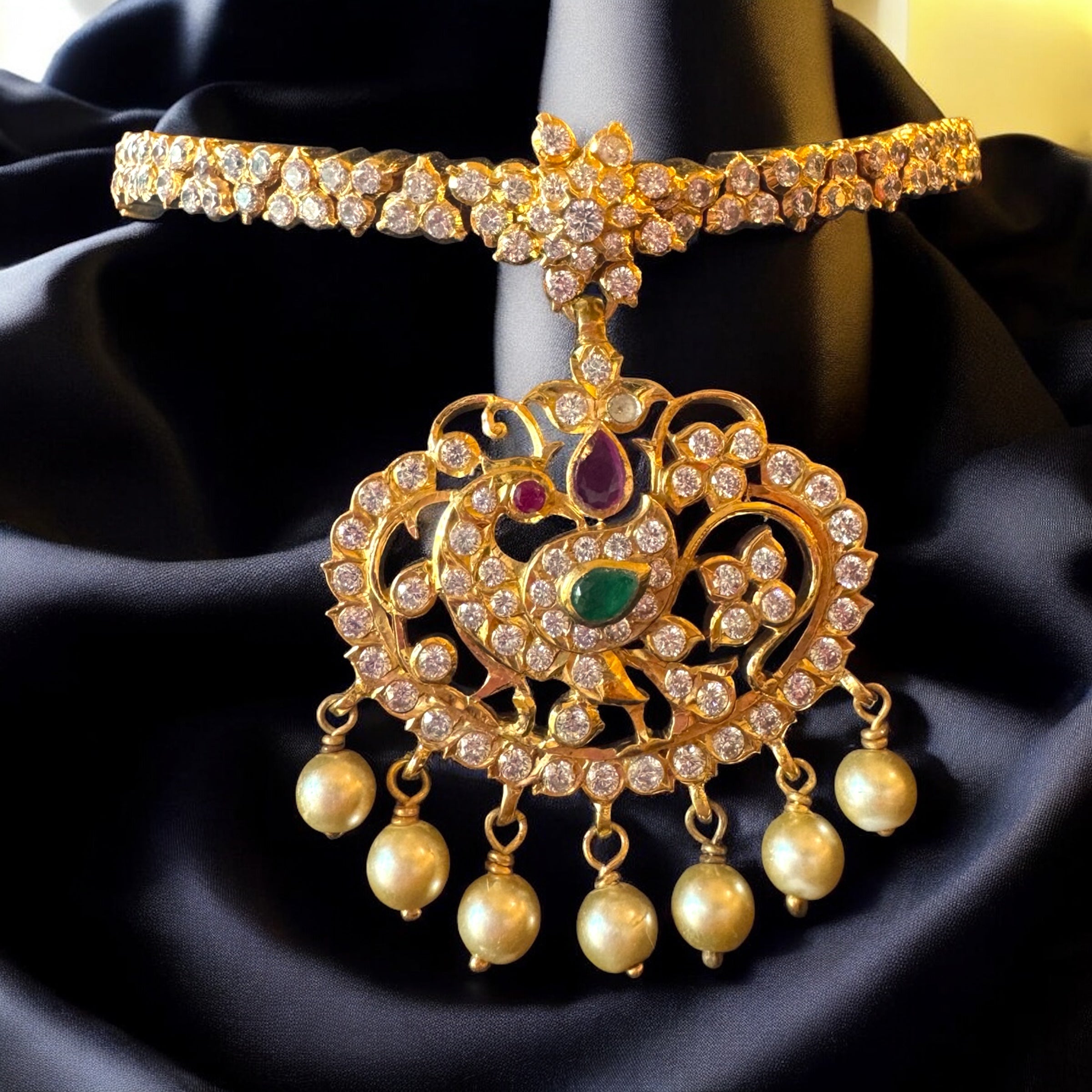 Traditional Peacock Addigai Diamond Necklace – Gold Look, Real Sparkle