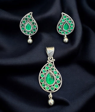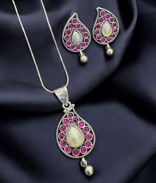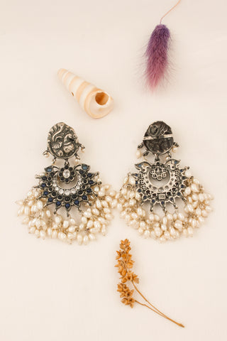 The Vajra Shankhu, Chakra Nama Silver Pearl Necklace & Earrings (Oxidised)