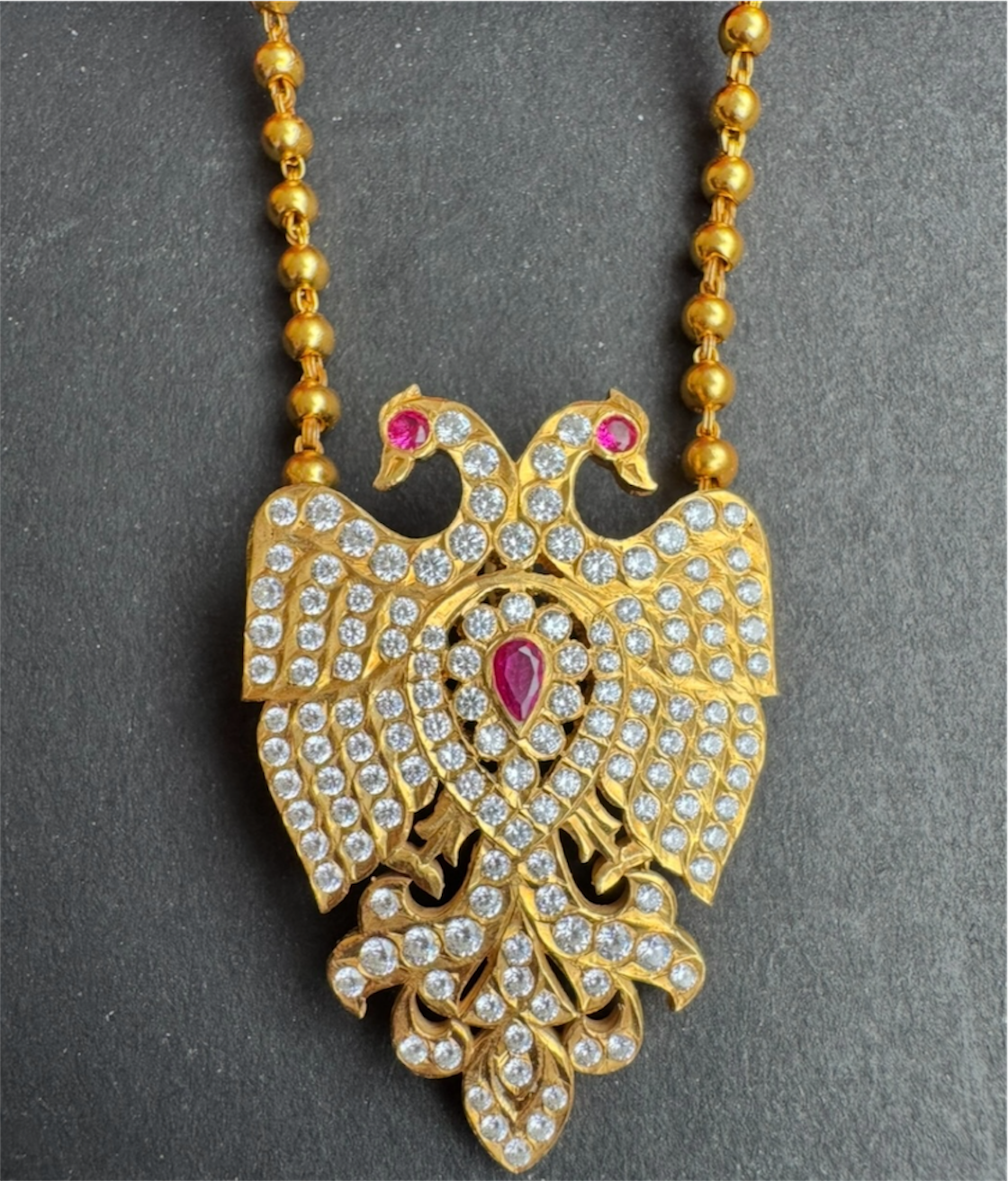 The Aishvi Silver Gandberunda Necklace-Buy antique diamond pendant online - KO Jewellery