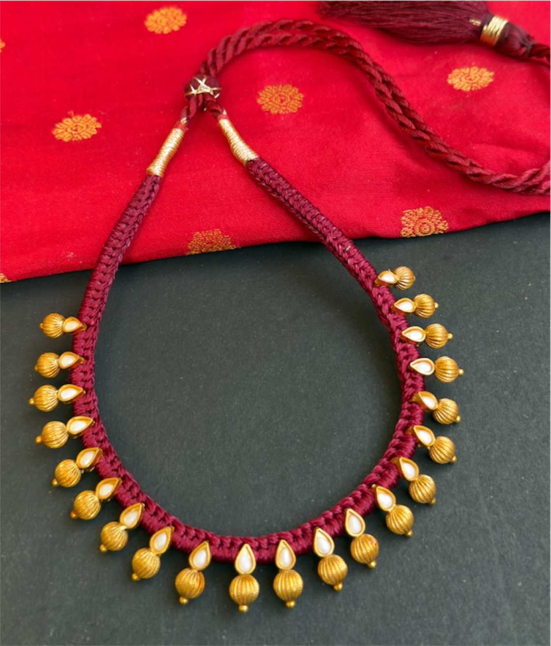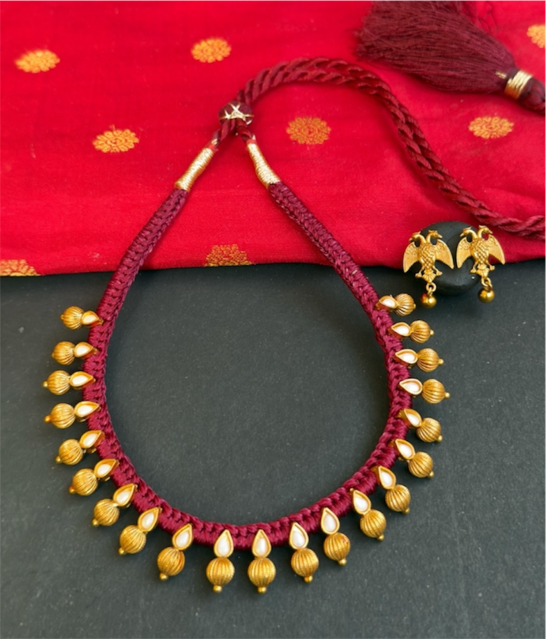 The Chaya Silver Red Thread Pearl Necklace & Earrings -Buy heritage silver Jewellery Online - KO Jewellery