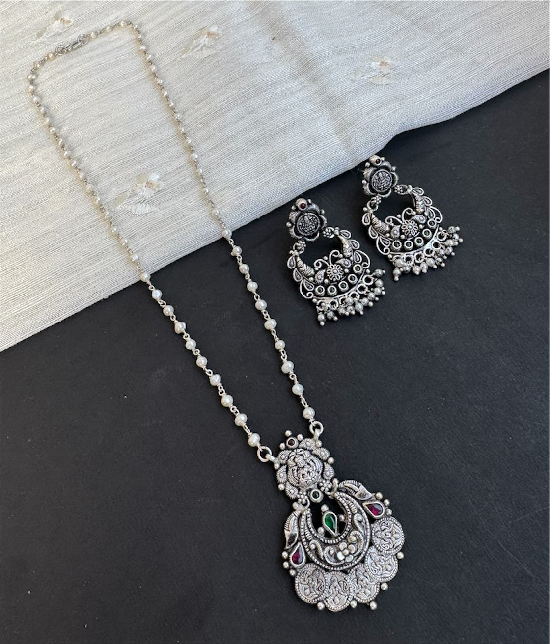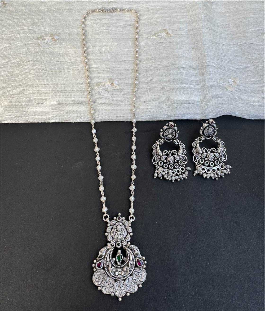 The Dharani Silver Lakshmi Pearl Necklace & Earrings