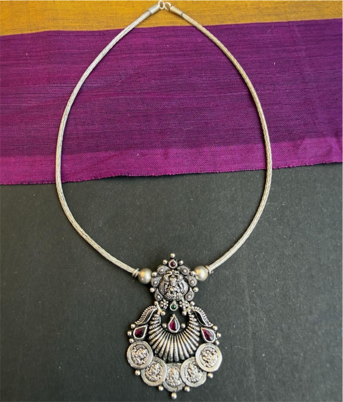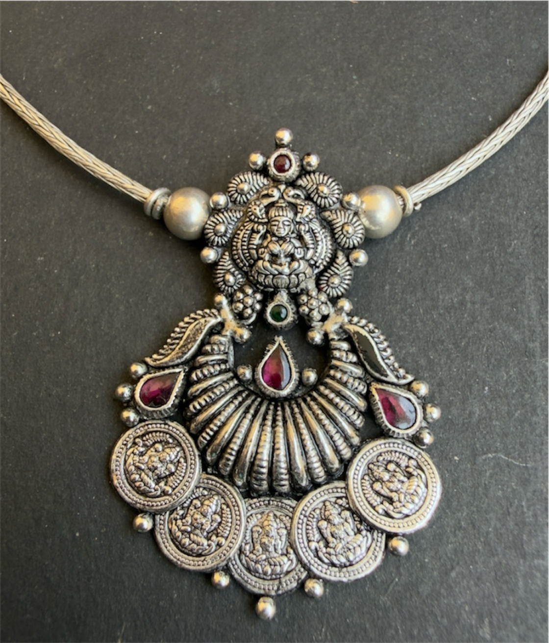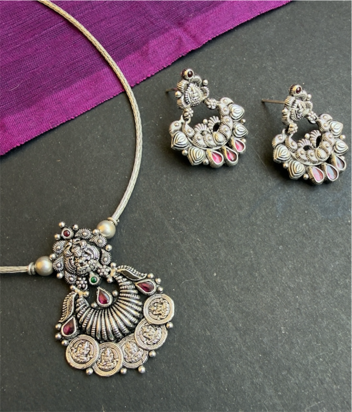 The Rithvika Silver Lakshmi Necklace & Earrings